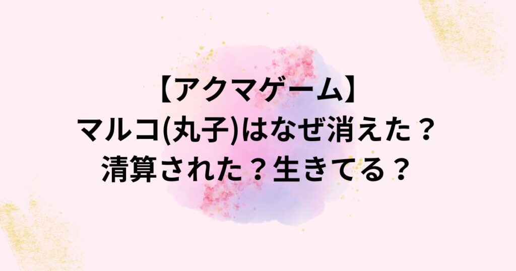 【アクマゲーム】マルコ(丸子)はなぜ消えた?清算された?生きてる?