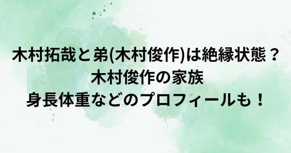 木村拓哉と弟(木村俊作)は絶縁状態?家族や身長体重などのプロフィールも!