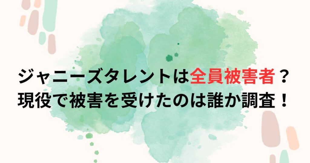 ジャニーズタレントは全員被害者?現役で被害を受けたのは誰か調査!