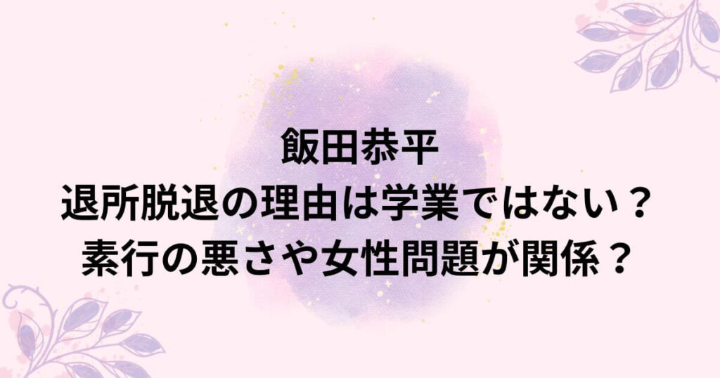 飯田恭平の退所脱退の理由は学業ではない?素行の悪さや女性問題が関係?