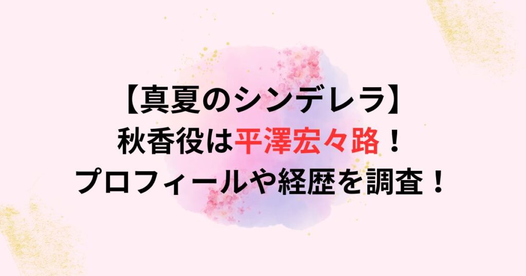 【真夏のシンデレラ】秋香役は平澤宏々路!プロフィールや経歴を調査!
