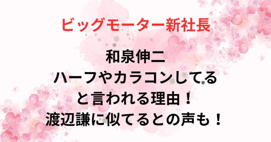 ビッグモーターの新社長に就任した和泉伸二さんの見た目について話題になっています。 ネットでは和泉伸二さんに対し「ハーフなの?」「カラコンしてるの?」という声が多くありますが、その理由とは一体何でしょうか。 また、俳優の渡辺謙さんに似ている... -