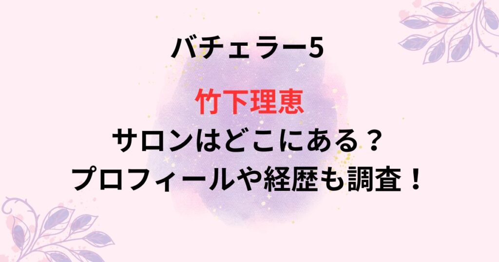 2023年8月3日(木)から始まるバチェラー5の女性メンバーが発表されましたね! 今回はその中の一人である竹下理恵さんについて調査したいと思います。 竹下理恵さんの肩書は「メイク講師」となっていますが、どうやら完全プライベートサロンも経営しているよ... -
