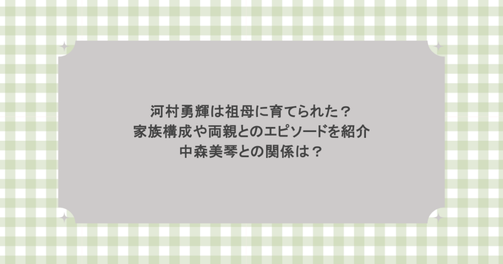 河村勇輝は祖母に育てられた?両親などの家族構成や彼女についても調査!