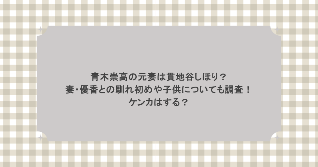 青木崇高の元妻は貫地谷しほり?妻・優香との馴れ初めや子供についても調査!ケンカはする?