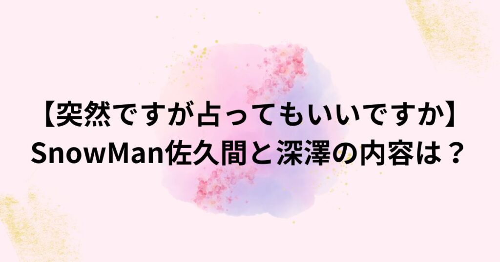 【突然ですが占ってもいいですか】SnowMan佐久間と深澤の内容は?