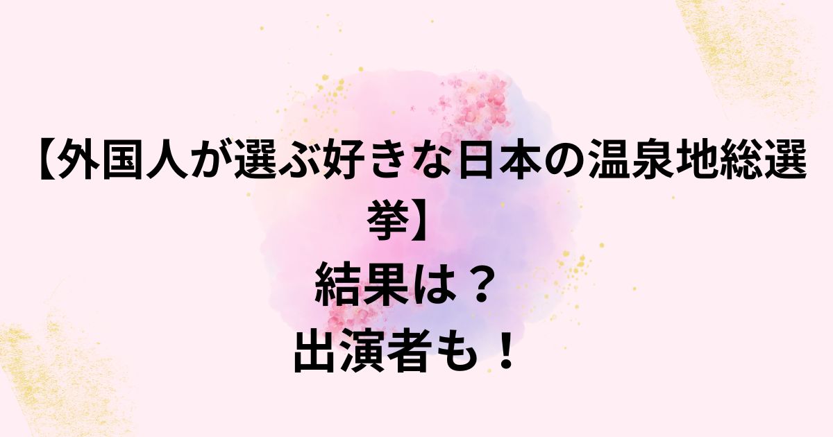 今回は「【外国人が選ぶ好きな日本の温泉地総選挙】結果は?出演者も!」と題して、『外国人が選ぶ好きな日本の温泉地総選挙』の結果や出演者について紹介しました。