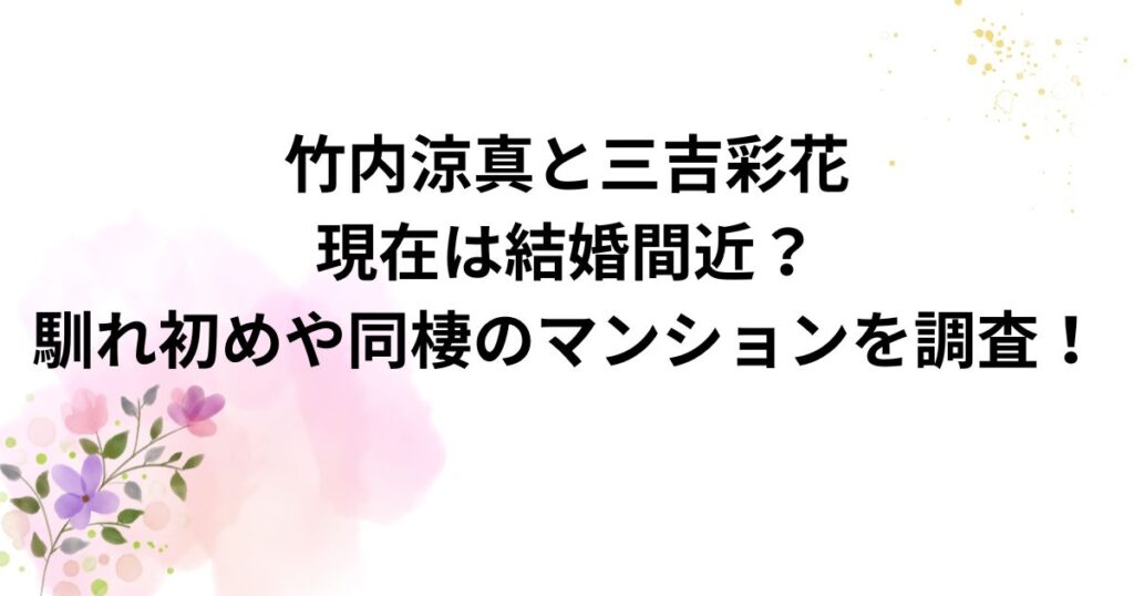 竹内涼真と三吉彩花の現在は結婚間近?馴れ初めや同棲のマンションについても!俳優の竹内涼真さんと女優の三吉彩花さんは、2020年5月に交際していると報道されましたが、現在お二人の関係はどうなっているのでしょうか。 竹内涼真さんと三吉彩花さんの交際は現在も順調で、結婚間近とも言われているとか。 交際が報道されてすぐに同棲...