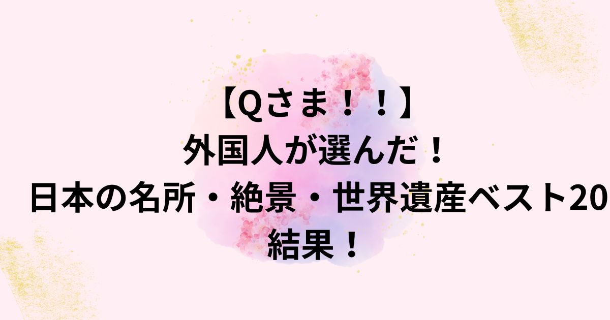 今回は「Qさま!!外国人が選んだ!日本の名所・絶景・世界遺産ベスト20結果!」と題して、『Qさま!!外国人が選んだ!日本の名所・絶景・世界遺産ベスト20』の結果について調査しました。